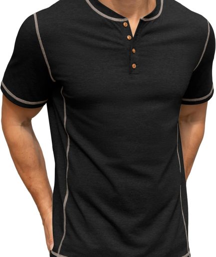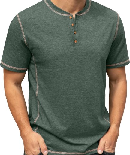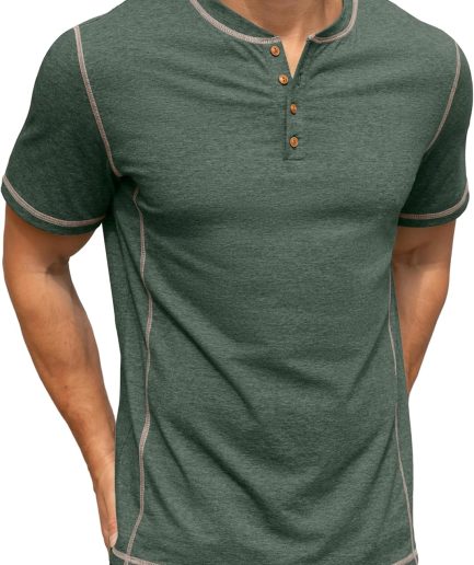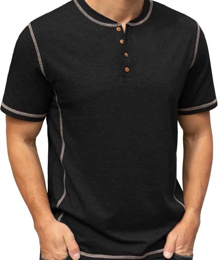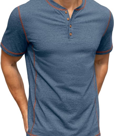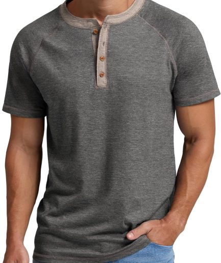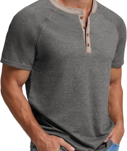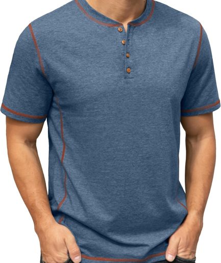 Mens Henley Short Sleeve T-Shirt Cotton Shirt