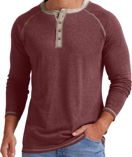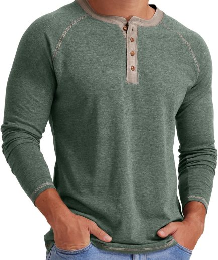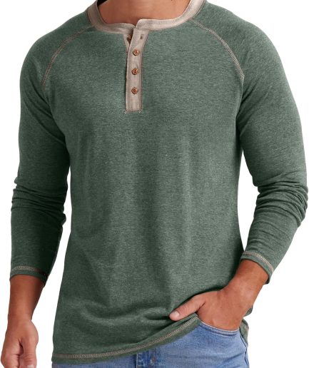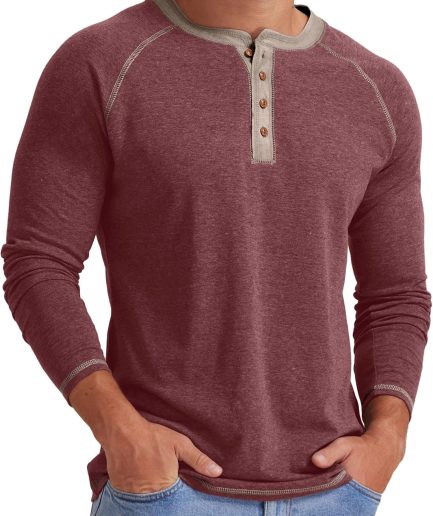 Mens Henley Long/Short Sleeve T-Shirt Cotton Casual Shirt