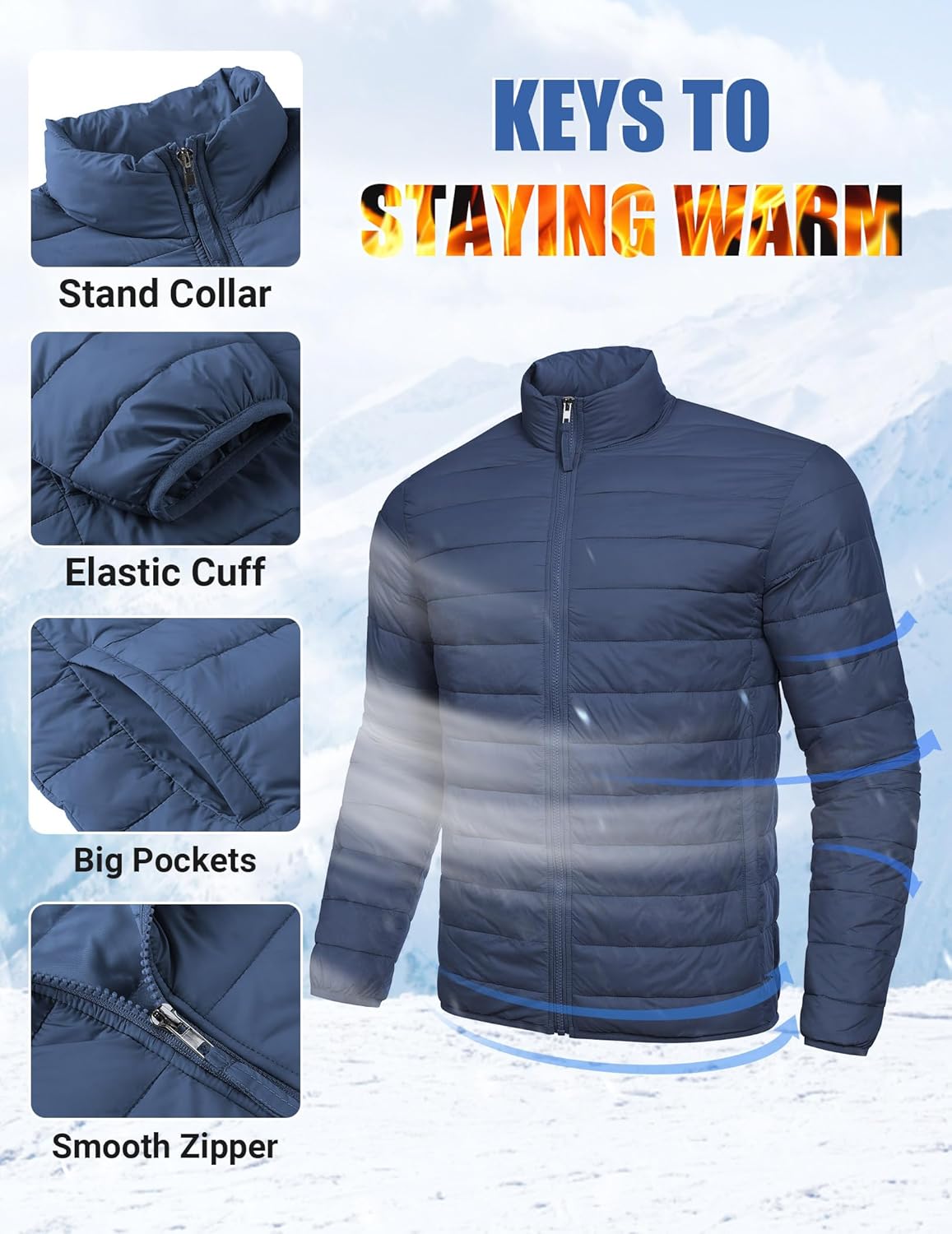 - Mens Puffer Jacket: Lightweight puffer jackets for men,crafted from soft and light nylon fabric, give you ultimate warmth and comfort, a must-have winter insulated jacket for your wardrobe for those chilly days